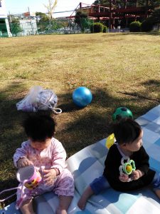 フィリオ便り 天気の良い日は・・・☆ふたば組☆ 2019年11月29日 天気の良い日は寒さに負けず、公園でまでお散歩に出かけています♪ 何を作ろうかなぁ~? ふたば組の子ども達はみんなブランコが大好き! 小さい赤ちゃんたちもシートの上でのんびりしたり、一緒に砂遊びを楽しんだりしています♪ これからも元気いっぱい遊ぼうね(^^♪