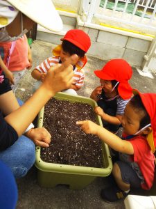 たいよう組のみんなで、ヒマワリの種を植えたよ♪