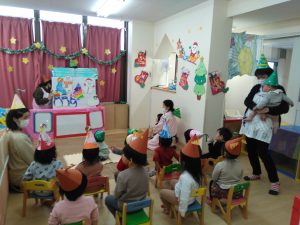 クリスマスシルエットクイズの後は、クリスマスのパネルシアターを見ました。