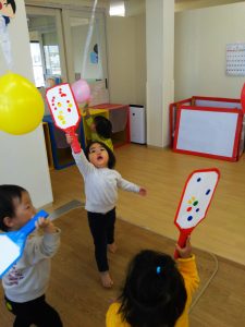 ☆牛乳パックにシールを貼り「羽子板」が出来ましたよ。