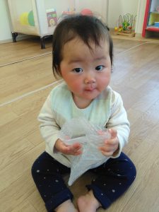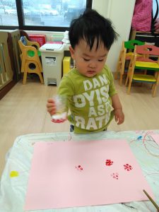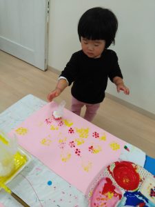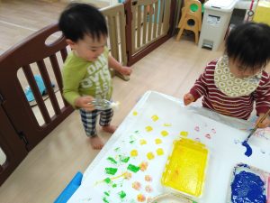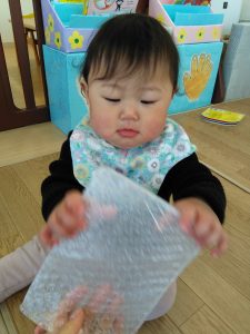 低月齢の子ども達はスタンプは難しかったので、プチプチシートで遊びました!