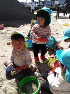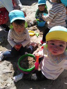 みてみて~!バケツの中にお砂沢山入れたよ~!