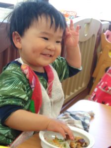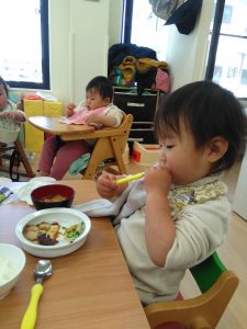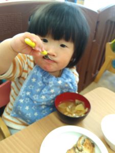 最初は苦手だったけどスプーンとフォークを使って上手に食べれるようになりました!!