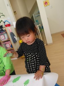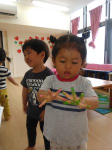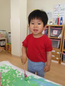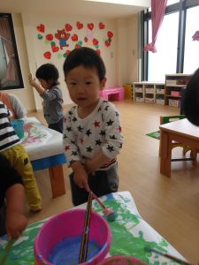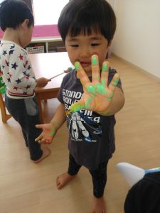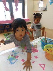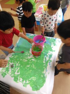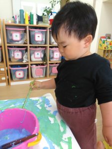 絵の具の色が混ざると「なんか違う色になった!」と色の変化にも気付いていましたよ!