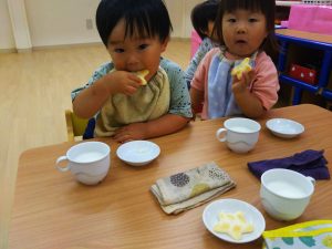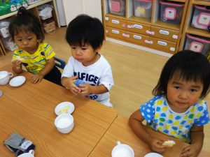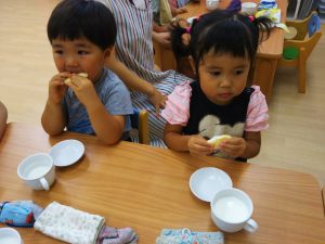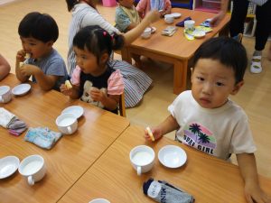七夕会の後はみんなで星の形のおせんべいのおやつを食べました!!
