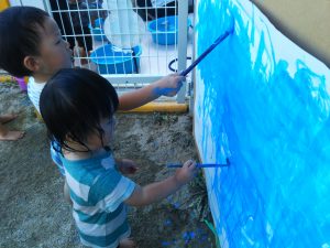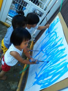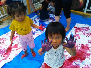 この日は絵の具遊びをしました。