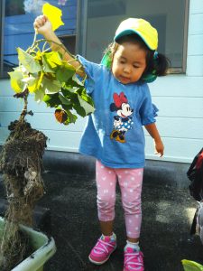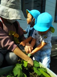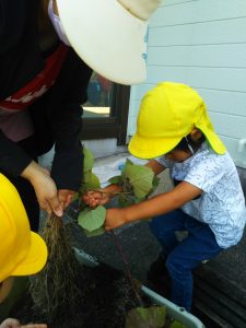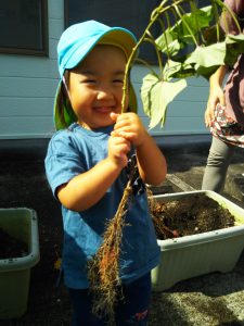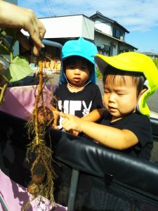 春にみんなで植えたさつま芋の苗が大きくなり9月にお芋ほりを行いました!