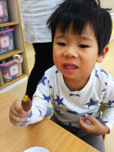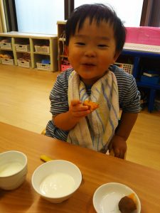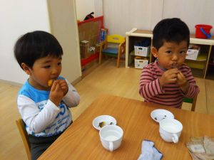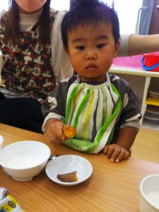 朝お芋の絵本を読んでもらってまだかまだかとワクワク楽しみな様子の子ども達♪