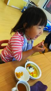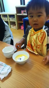かぼちゃやおばけの顔を崩さないように慎重に食べていたり