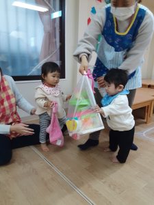 子どもたちは家でサンタさんに貰ったプレゼントの話など楽しそうに