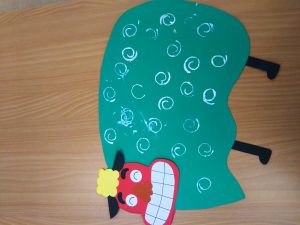 少し前にはなりますが、1月始めに獅子舞の着物にスタンプを押しました