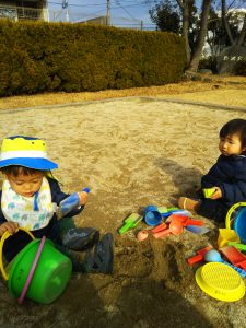 公園では遊具で遊んだり砂場で遊んだり、それぞれ好きな遊びを楽しんでいます。