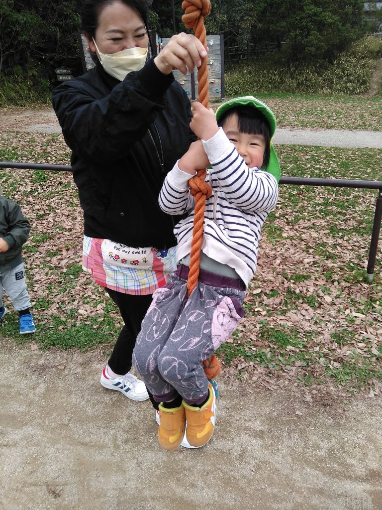 公園に到着!!おやつを食べてから遊具で遊びましたよ!