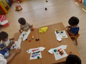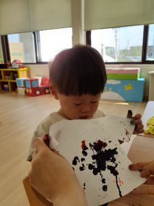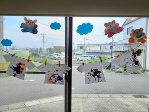 フィリオ便り すてきなお洋服できたよ☆そらぐみ 2022年7月26日 するするペイント「はじまるくん」を使って洋服の形の画用紙にお絵描きをしました! いろがついた~!! ポンポン、たのしいねぇ つぎは、なにいろにしようかな? おようふく、かんせい~!! かっこいいでしょ? 完成した洋服は、お部屋の窓に飾ってありますよ! みんな指をさして「あ!!」と嬉しそうに眺めています!