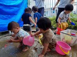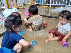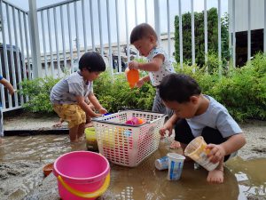 昨日の雨の影響で、砂場には大きな水たまりが!!
