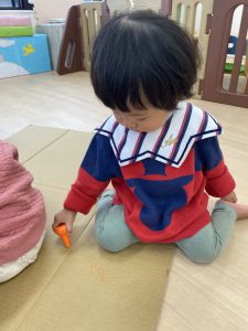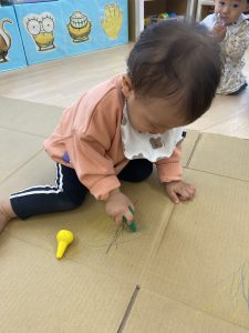 最後はダンボールを大きく広げて、シールを貼ったりお絵描きをしましたよ☆
