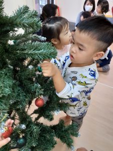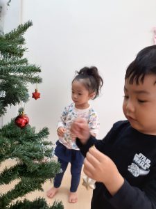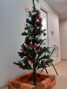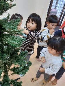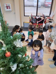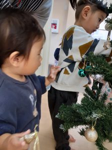 保育園でも、クリスマスツリーの飾りつけをしましたよ!