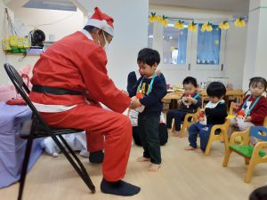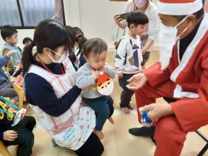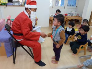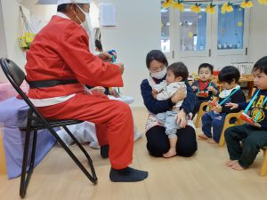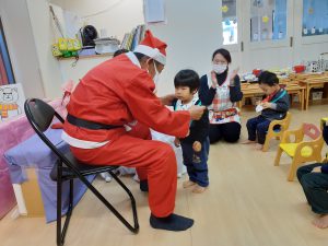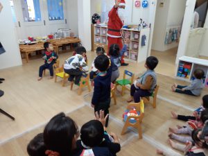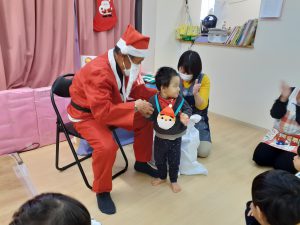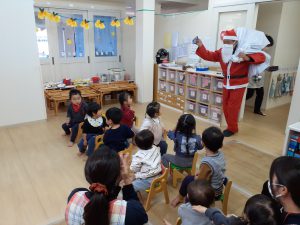 お迎えに来てくれたお母さん、お父さんに、「サンタさんきた!!」と今日あった出来事を報告する姿もみられました。