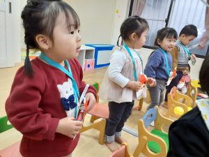 プレゼントのお返しに、みんなでサンタさんに歌のプレゼントをしました。