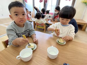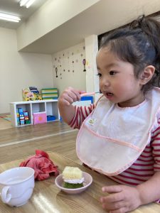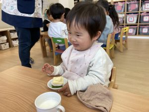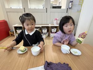 前日には、ひしもちのような可愛い3色のケーキがおやつに出て