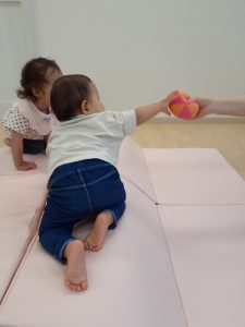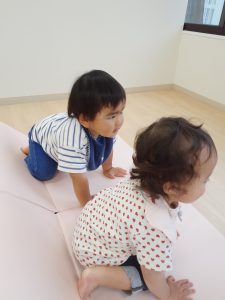 フィリオ便り マットで遊んだよ(ふたば組、そら組低月齢) 2023年6月2日 梅雨真っ只中、雨がたくさん降りますね。 今日はマットで身体を動かしました。 わーい、マットだあ!気持ちいいなあ わたしも上手にのぼれるよ ぼくにもボールちょうだい みんなで遊ぶとなんか楽しいね 雨音が眠気を誘うようで、マット遊びが終わるころには、なんだか目がとろーんとしてしまう子もいました。