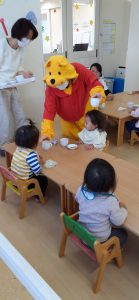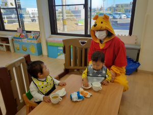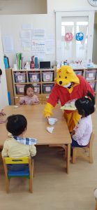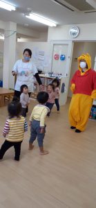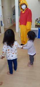 おやつを食べ終わり、体操の時間にもう一度プーさんが来てくれました!