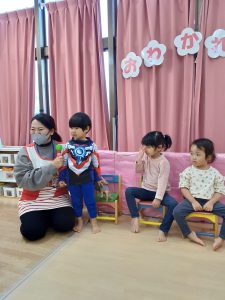 ふたば組、そら組のお友達も、たいよう組さんのお話を聞いていてくれました。