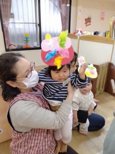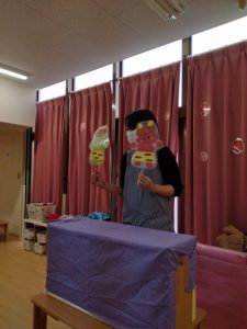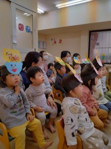 みんなで鬼のペープサートを楽しみました。
