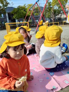 お外で食べるおやつは美味しいな~☆