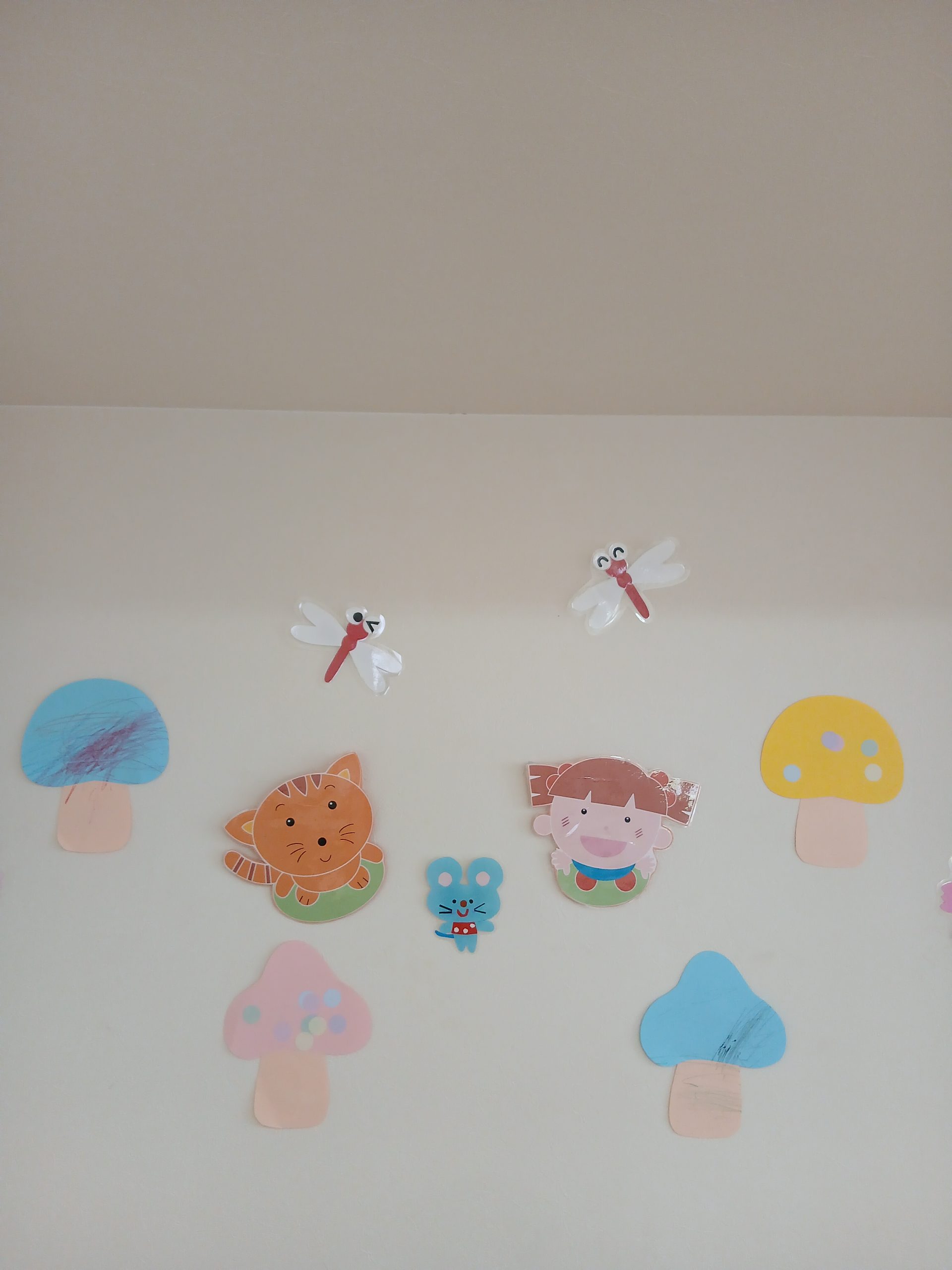 今日は秋の製作でキノコにクレヨンで模様を描いたり、シールを貼りました!