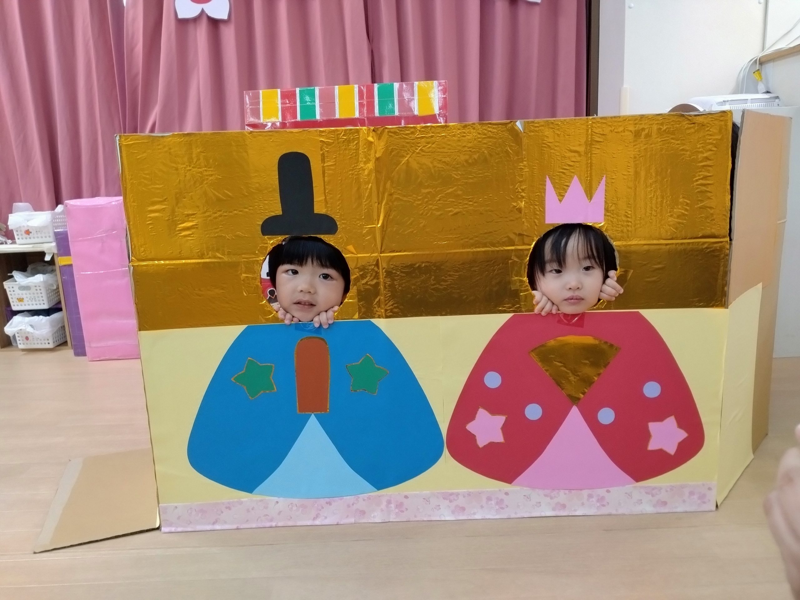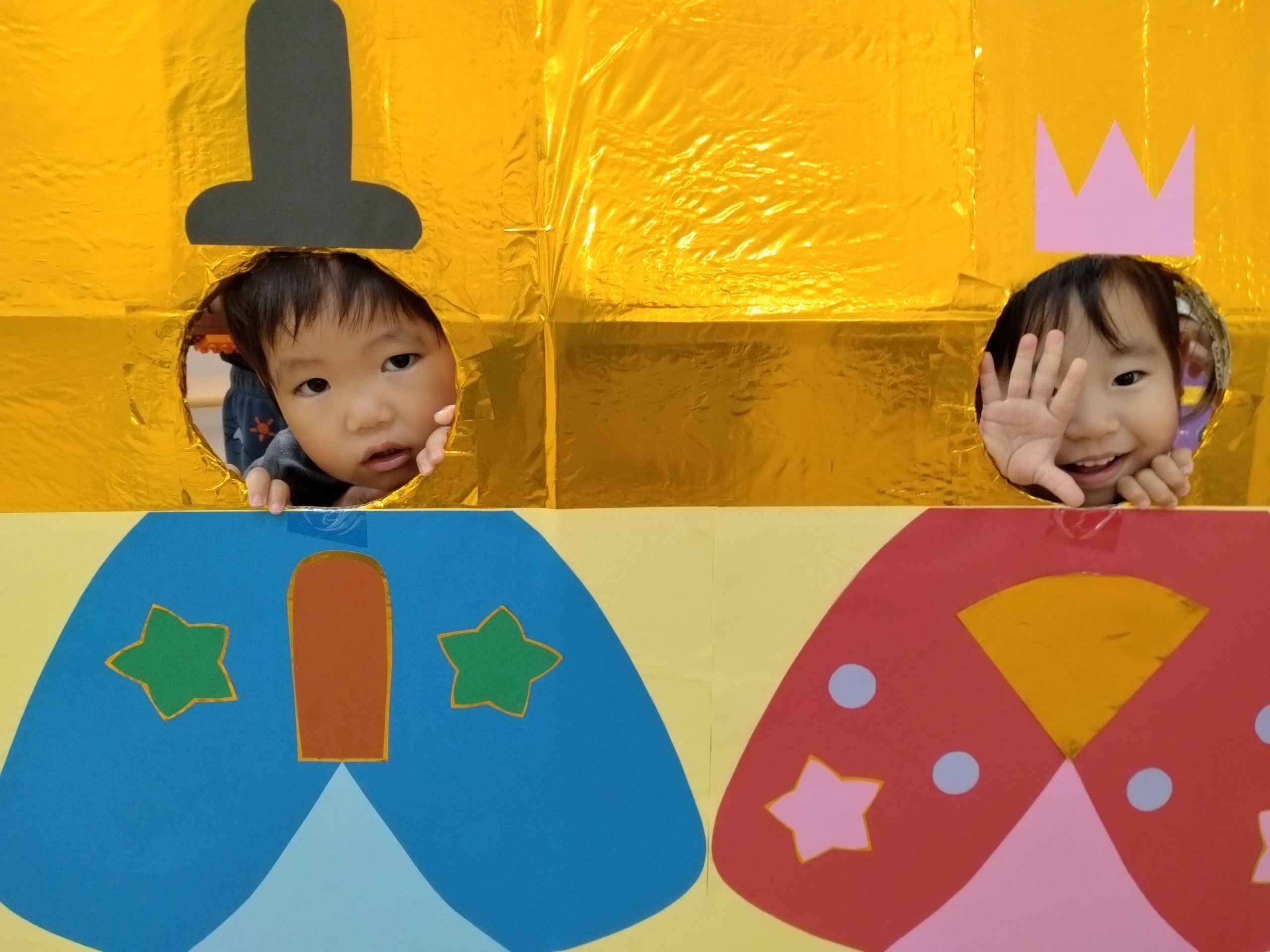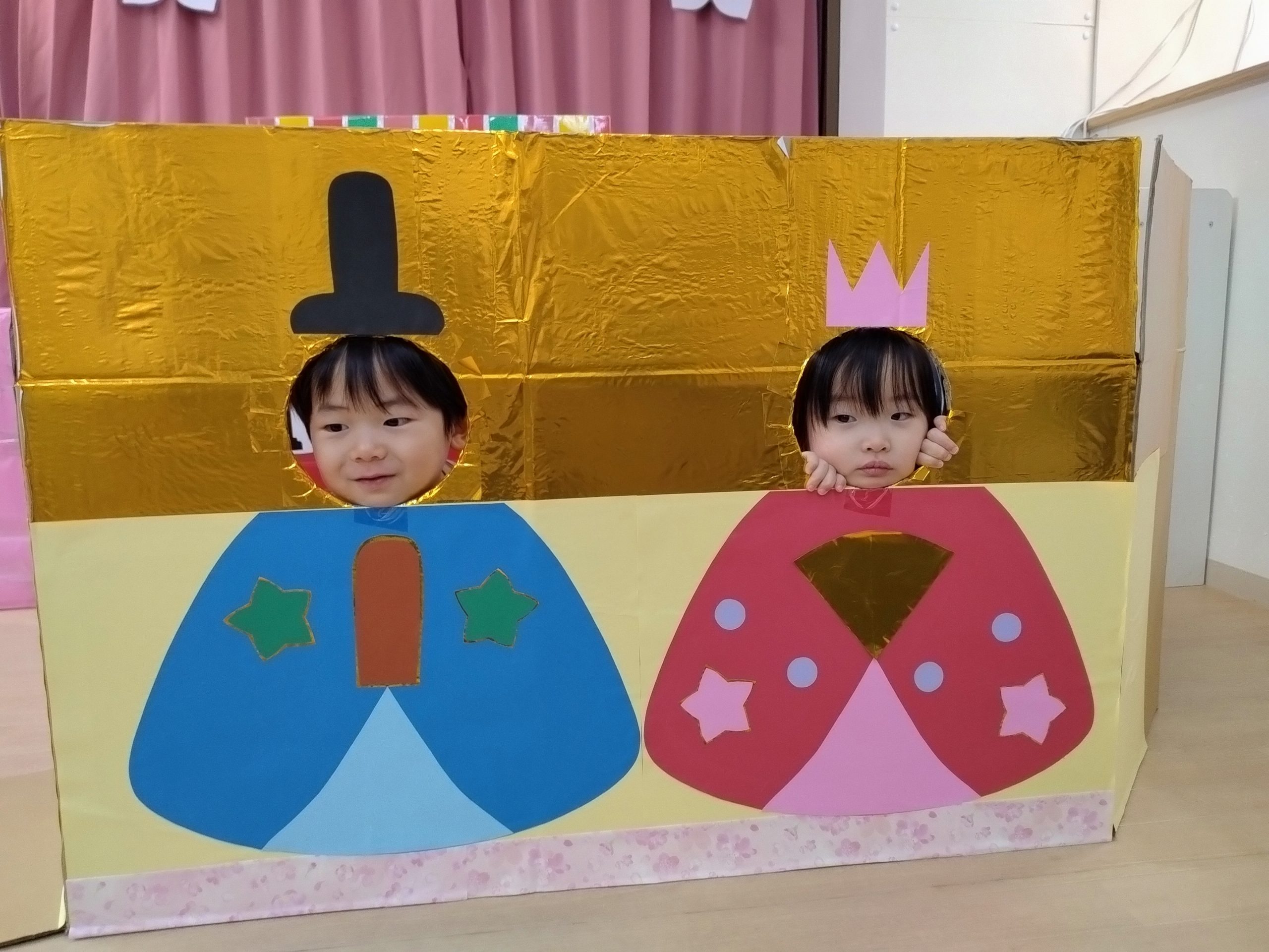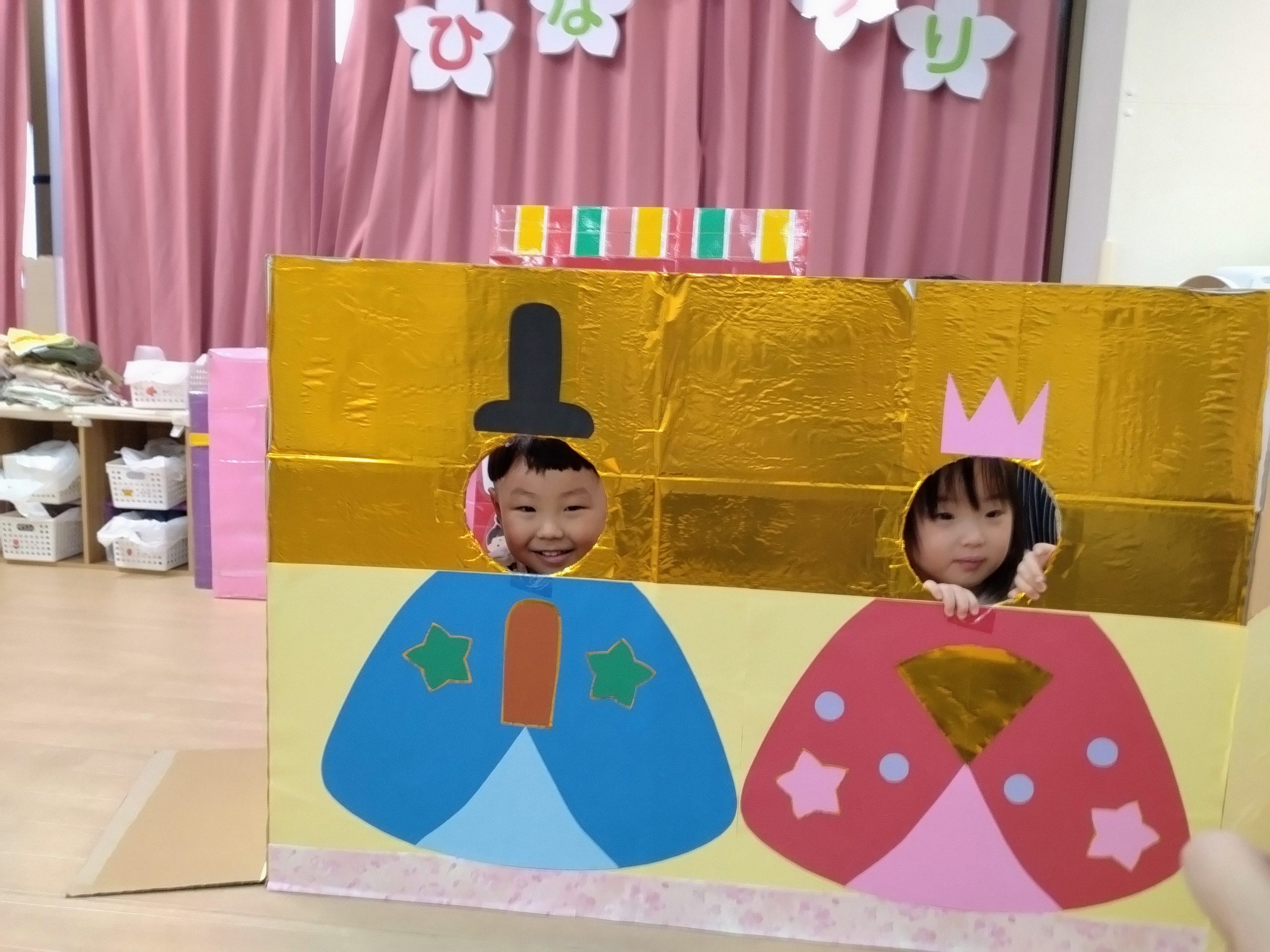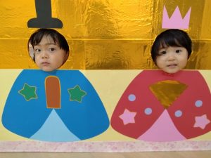 フィリオ便り ひなまつり会 2026年3月3日 今日は3月3日桃の節句 ひなまつり会をしました。 さあ、何が始まるのかなぁ 最初に「うれしいひなまつり」を歌いました。 何度もクラスで歌ってきたので、みんな大きな声で元気に歌っていました。 その次はひなまつり関連クイズの時間です。 なかなか難しいクイズでしたが、みんな一生懸命考えてくれました。 最後はお雛様とお内裏様のパネルから顔を出して、写真撮影です。 はい、チーズ! そして、今日の給食はちらし寿司 「お花のにんじんだぁ」と喜びながら 美味しそうに食べていました。