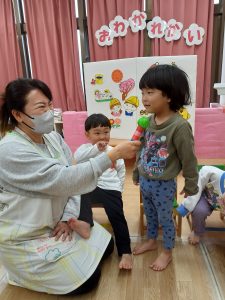 4月からは違う保育園に行くお友達がいるのでお別れ会をしました。